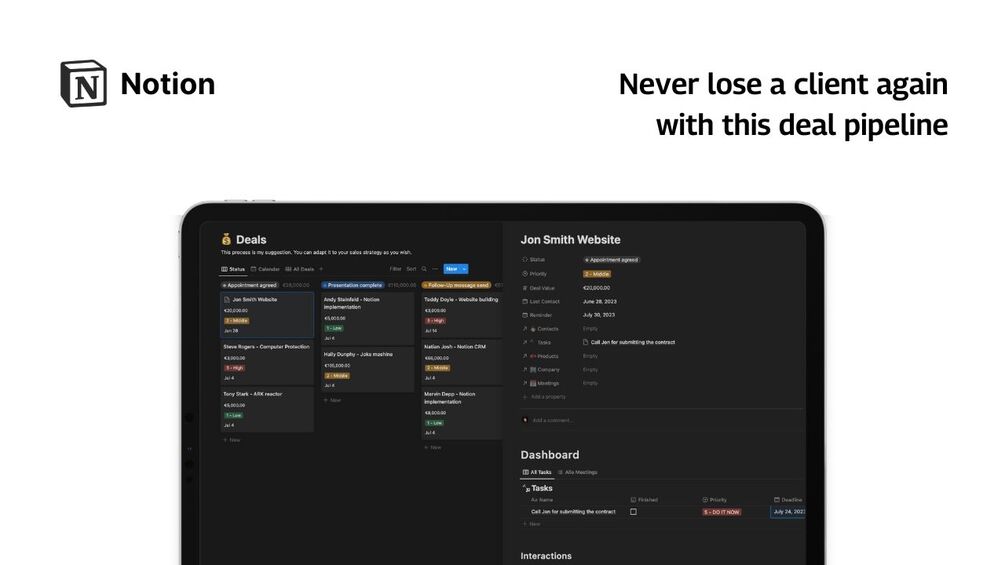 - Sales: Never miss a deal again with your sales optimised deal pipeline.